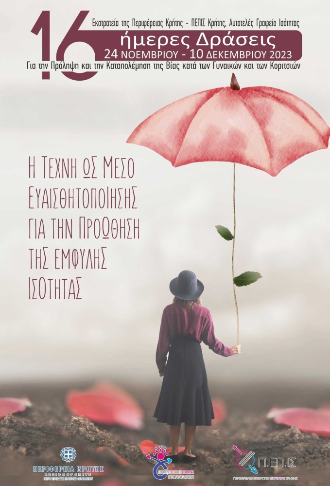 25 Νοεμβρίου 2023: Συμμετοχή στην Εκστρατεία «16ήμερες Δράσεις για την Πρόληψη και την Καταπολέμηση της Βίας κατά των Γυναικών και των Κοριτσιών: Ας Ενωθούμε για να Τερματίσουμε τη Βία!» της Περιφέρειας Κρήτης – Αυτοτελούς Γραφείου Ισότητας και Περιφερειακής Επιτροπής Ισότητας των Φύλων (Π.ΕΠ.ΙΣ.) Κρήτης.